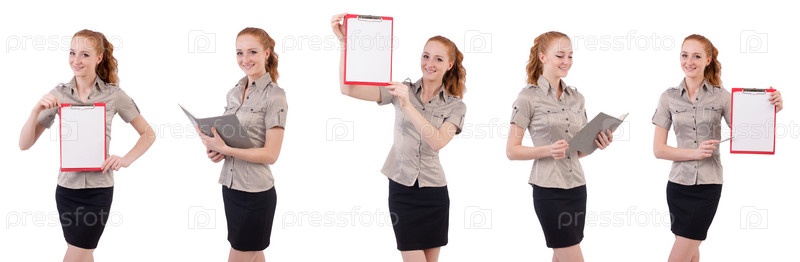 Довольно молодой сотрудник с бумагой, изолированной на белом