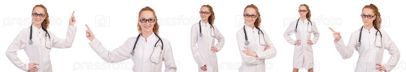 Красивая женщина-врач со стетоскопом, изолированным на белом