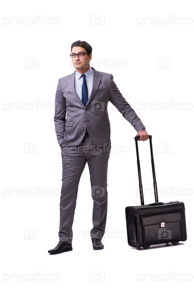 Молодой человек во время деловой поездки изолировался на белом