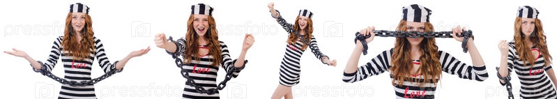 Красивая девушка в тюремной форме изолирована на белом