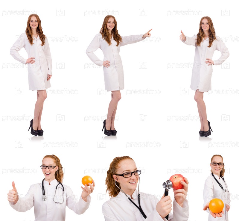 Красивая женщина-врач, изолированная на белом