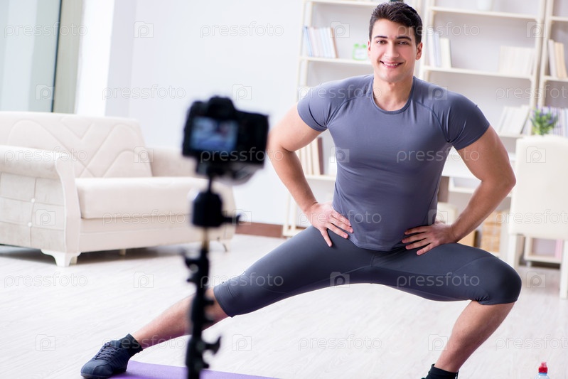 Спорт и здоровье блоггер записывает видео в спортивной концепции
