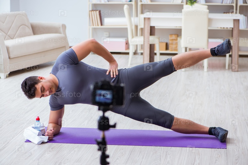 Спорт и здоровье блоггер записывает видео в спортивной концепции