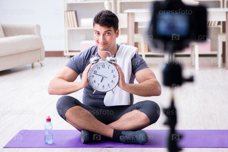 Спорт и здоровье блоггер записывает видео в спортивной концепции