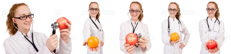 Красивая женщина-врач со стетоскопом и оранжевым изолированным на плече