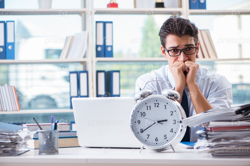 Бизнесмен пропустил крайний срок для выполнения поставленных задач в офисе