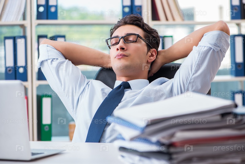 Усталый, истощенный бизнесмен сидит в офисе