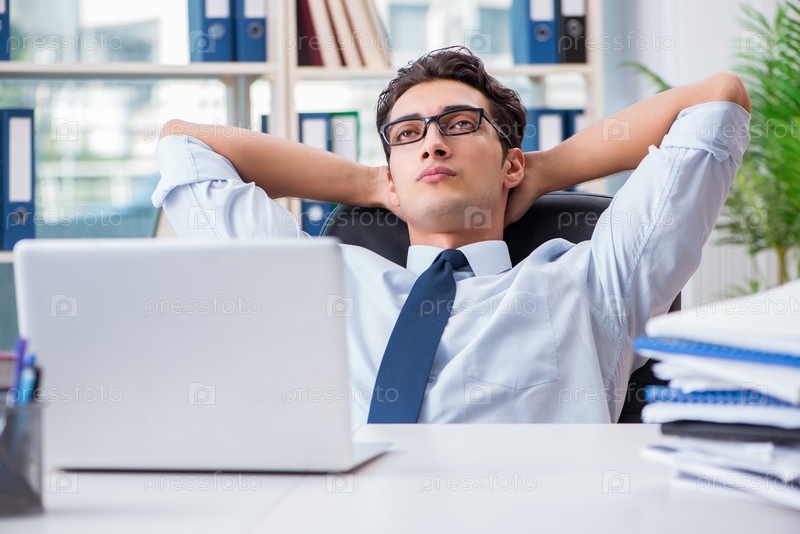 Усталый, истощенный бизнесмен сидит в офисе