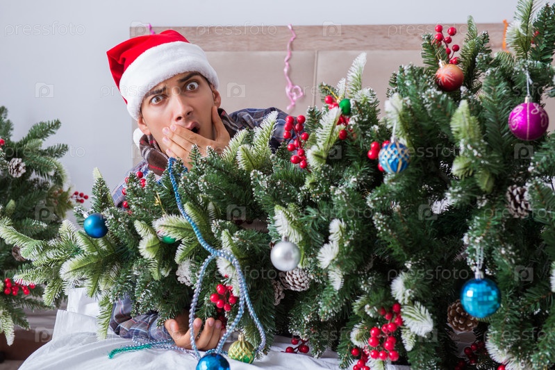 Мужчина страдает похмельем после рождественской вечеринки