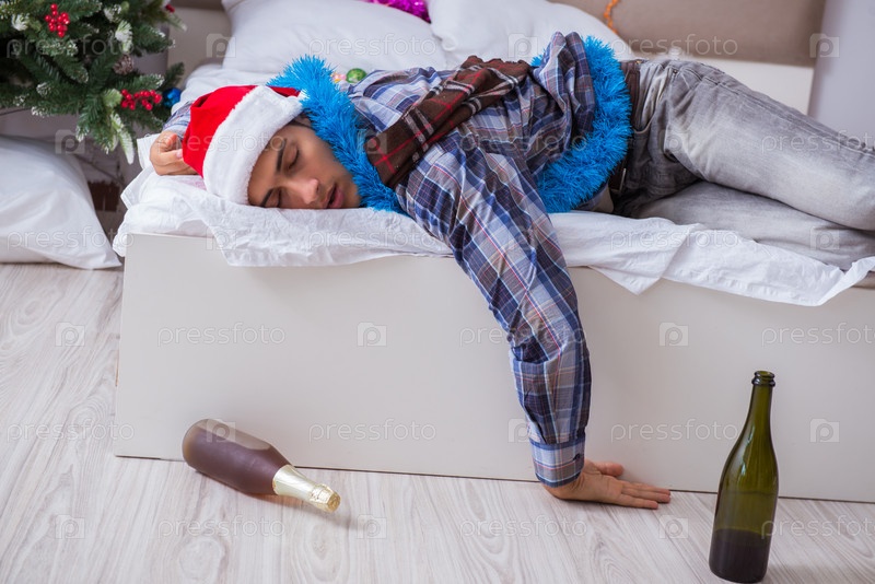 Мужчина страдает похмельем после рождественской вечеринки