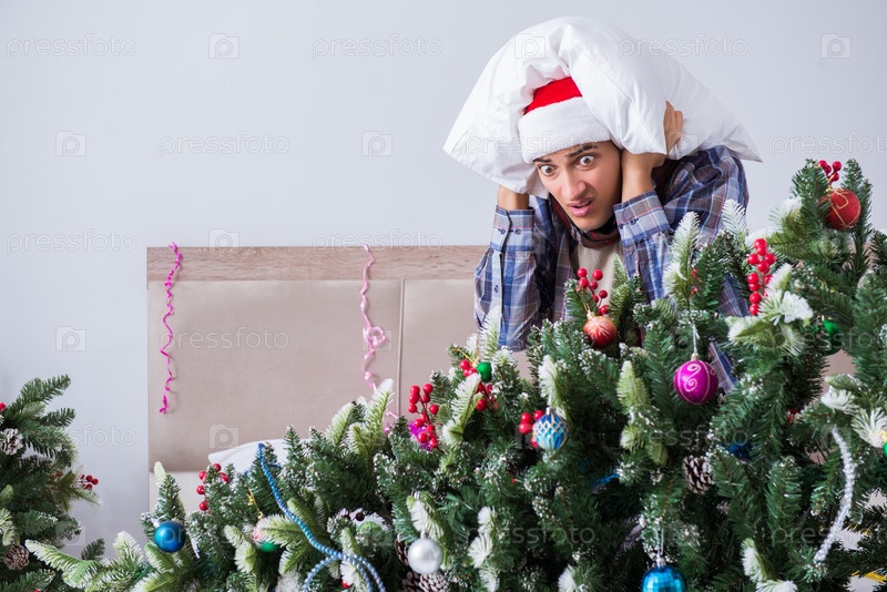 Человек, страдающий похмельем после рождественской вечеринки