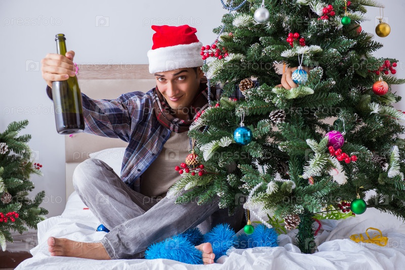 Человек, страдающий похмельем после рождественской вечеринки