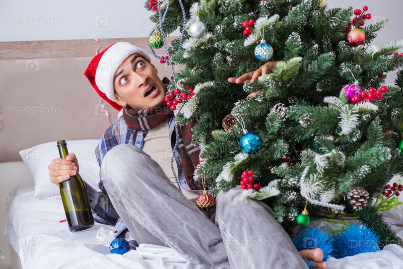 Человек, страдающий похмельем после рождественской вечеринки