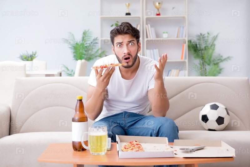 Человек, который ест пиццу с доставкой домой расслабляется отдыхает
