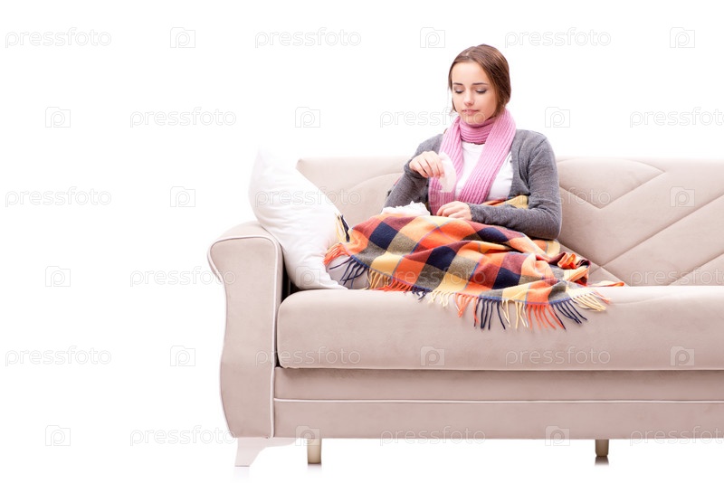 Подросток, страдающий от холода, сидит на диване