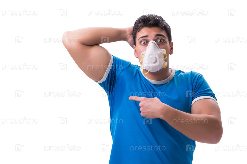 Мужчина, чрезмерно потеющий и плохо пахнущий изолированный на белом фоне