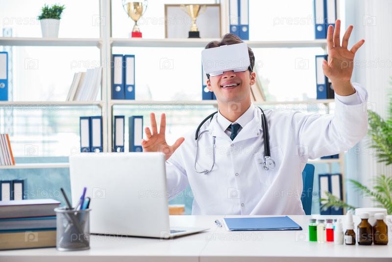 Доктор, работающий с очками виртуальной реальности VR