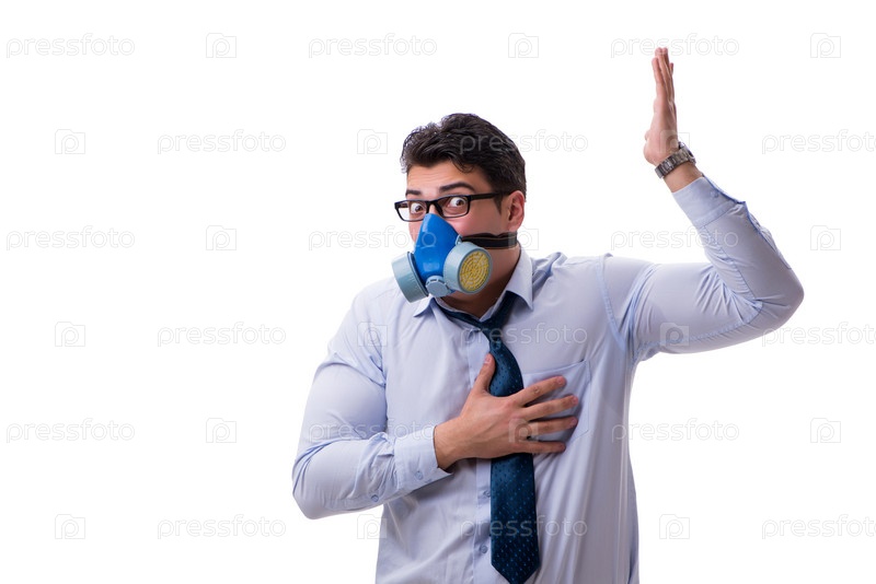 Бизнесмен чрезмерно потеет, плохо пахнет и изолирован на белом