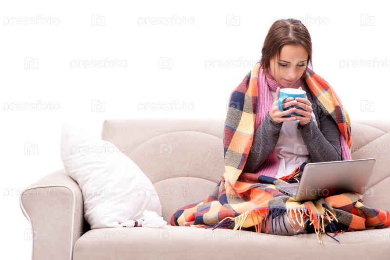 Подросток, страдающий от холода, сидит на диване