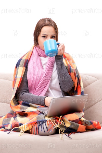 Подросток, страдающий от холода, сидит на диване