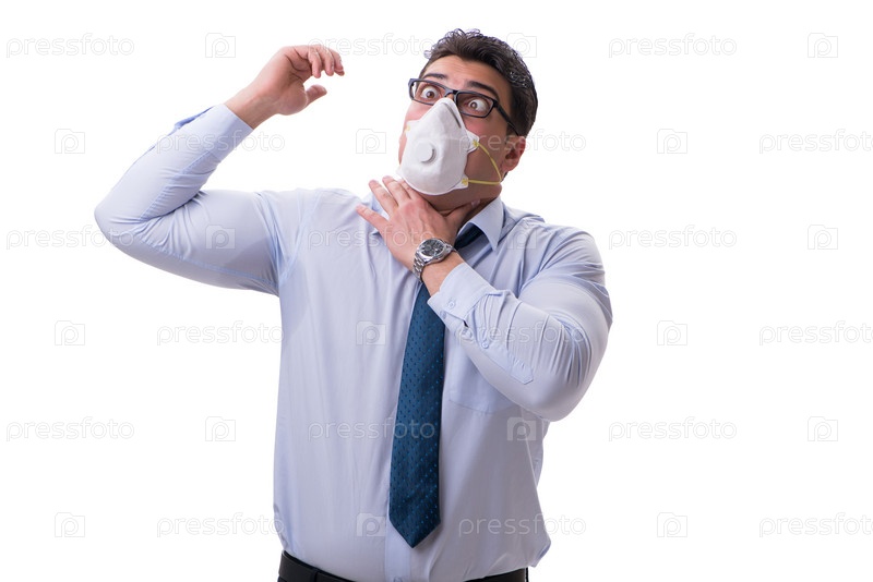 Бизнесмен чрезмерно потеет, плохо пахнет и изолирован на белом
