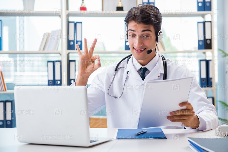 Молодой врач-мужчина в концепции телездоровья