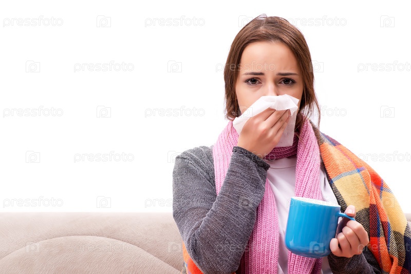 Подросток, страдающий от холода, сидит на диване