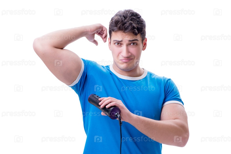Мужчина, чрезмерно потеющий и плохо пахнущий изолированный на белом фоне