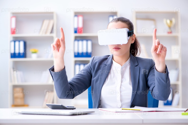 Деловая женщина с очками виртуальной реальности в офисе