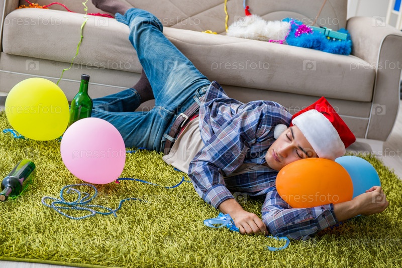 Человек, у которого похмелье после рождественской вечеринки
