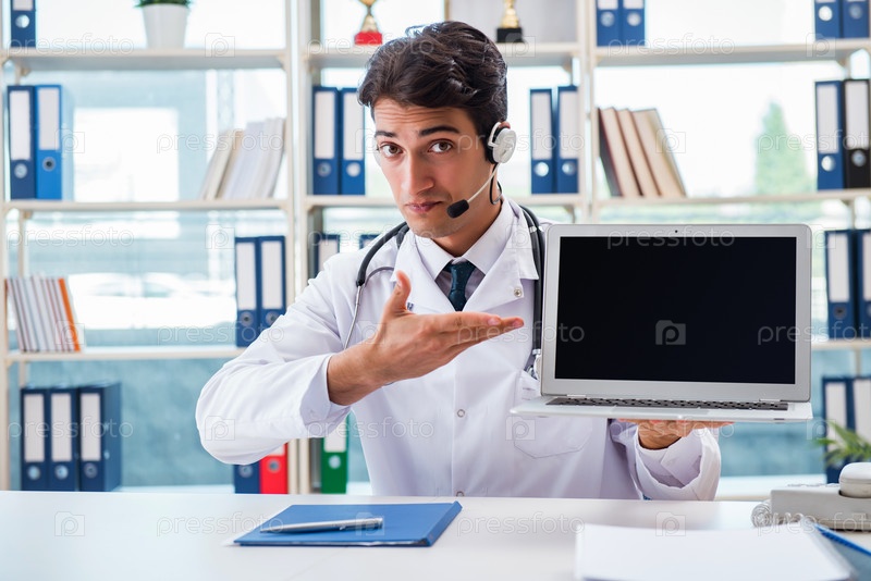 Молодой врач-мужчина в концепции телездоровья