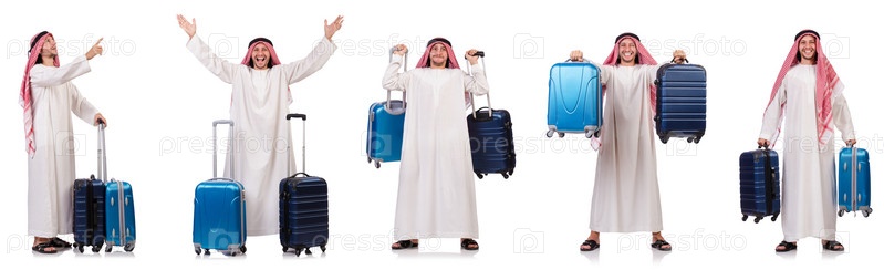 Араб с багажом на белом