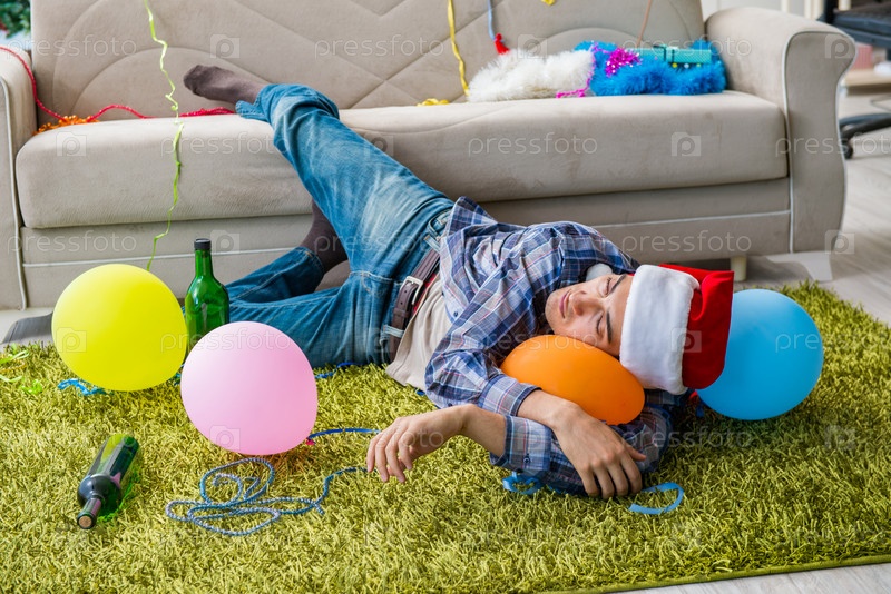 Мужчина с похмельем после рождественской вечеринки