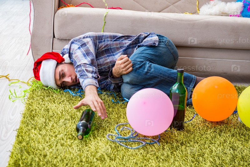 Мужчина с похмельем после рождественской вечеринки
