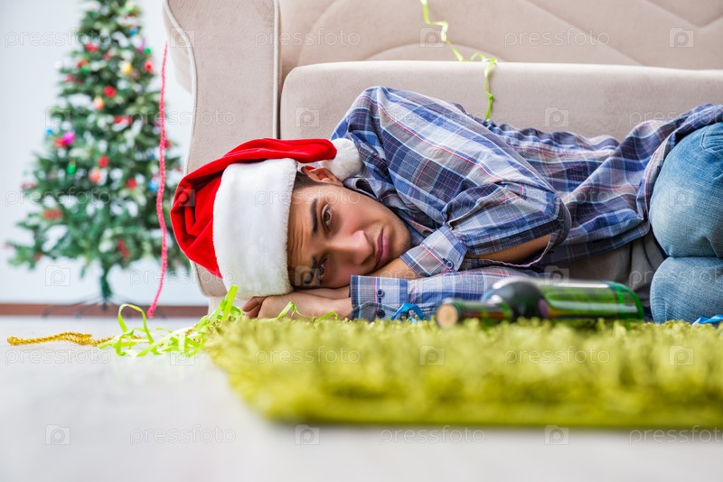 Мужчина с похмельем после рождественской вечеринки