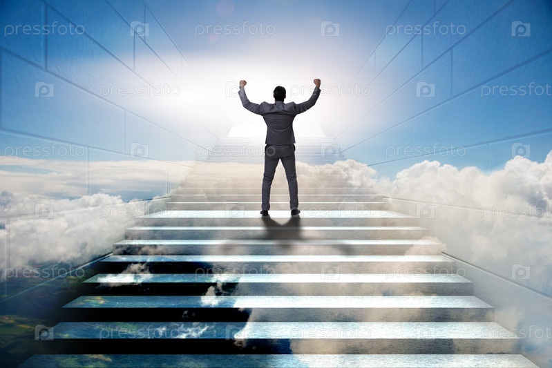 Бизнесмен, поднимающийся по сложной карьерной лестнице в бизнесе