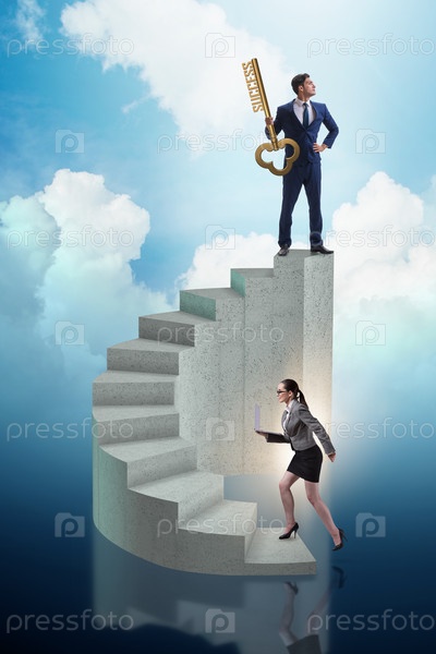 Бизнесмен с ключом к успеху на вершине карьеры