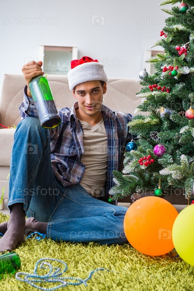 Мужчина с похмельем после рождественской вечеринки