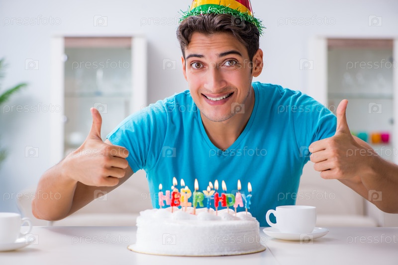 Молодой человек празднует день рождения один дома