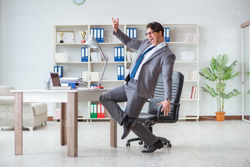 Бизнесмен развлекается, делая перерыв в офисе на работе