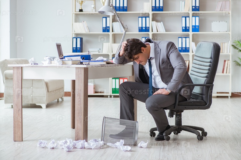 Разгневанный бизнесмен шокирован, работающий в офисе уволен уволен