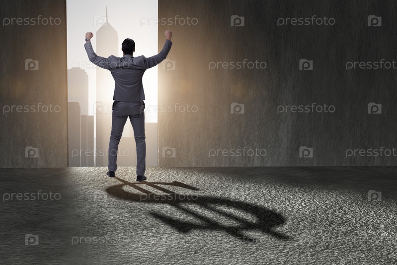 Бизнесмен бросает доллар, формируя тень в бизнес-концепции
