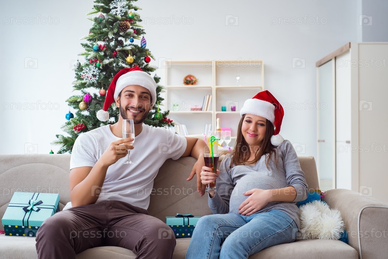 Молодая семья ждет ребенка, ребенок празднует Рождество