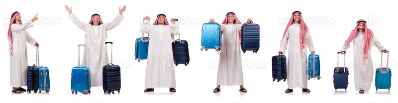 Араб с багажом на белом