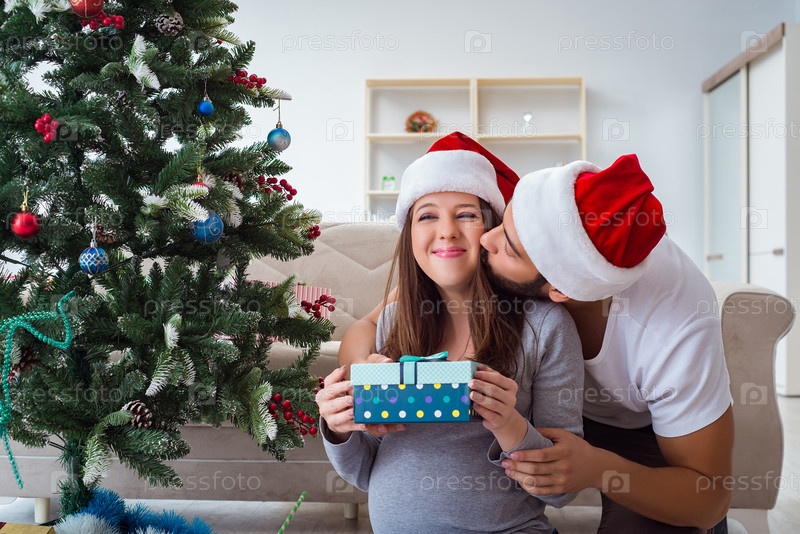 Молодая семья ждет ребенка, ребенок празднует Рождество