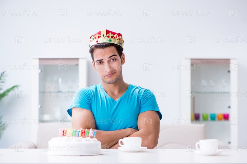 Молодой человек празднует день рождения один дома