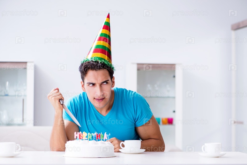 Молодой человек празднует день рождения один дома
