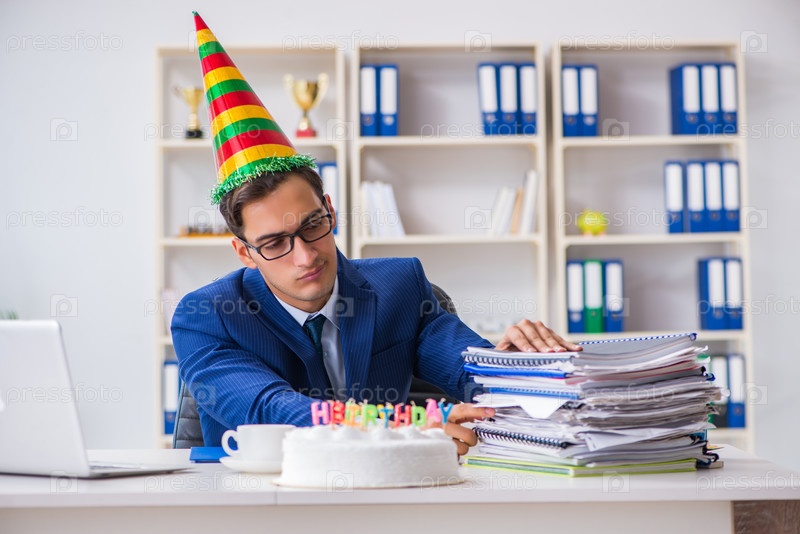 Мужчина празднует день рождения в офисе