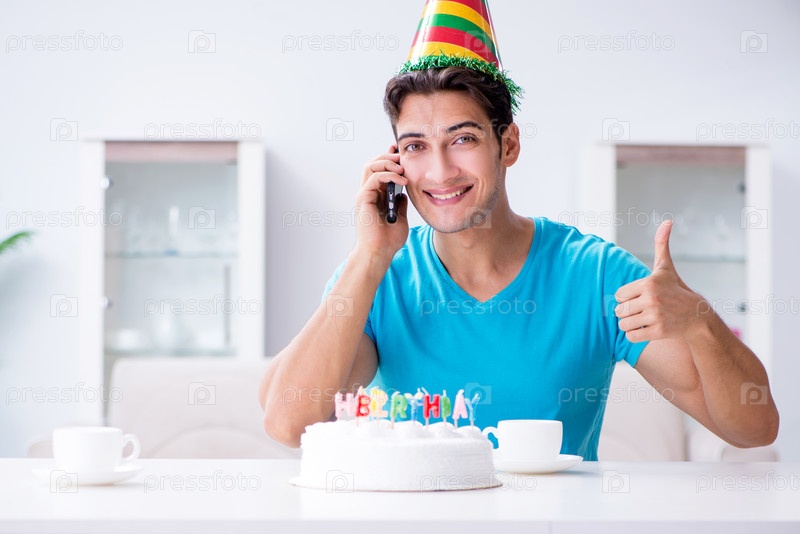 Молодой человек празднует день рождения один дома