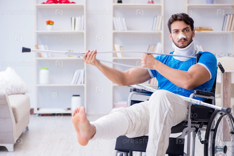 Раненый молодой человек восстанавливается дома